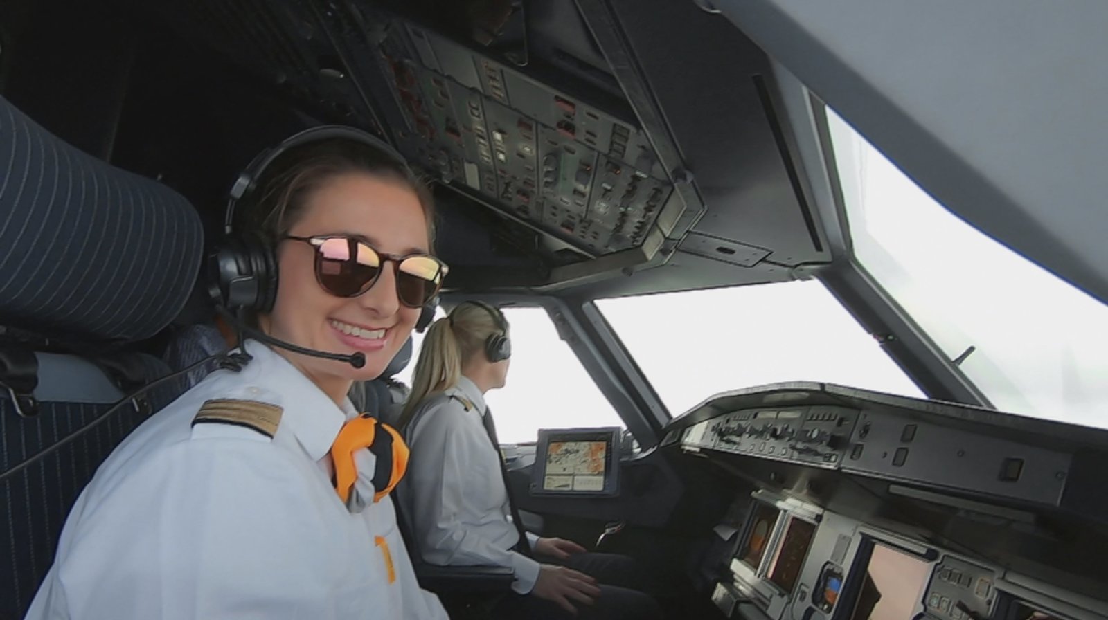 Mammutaufgabe Flughafen KoordinationCo-Pilotin Katja Rossi (links) und Flugkapitänin Riccarda Tammerle (im Hintergrund) im Cockpit.Bild: © HR/Andreas Graf