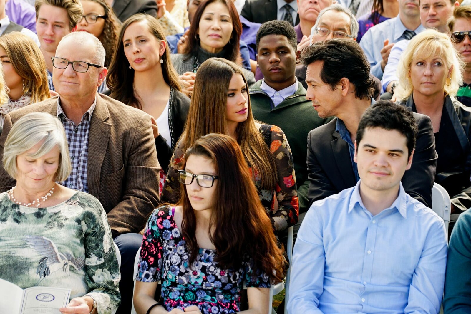 Absolventen mit AnhangL-R: Jay Pritchett (Ed O'Neill), Gloria Delgado-Pritchett (Sofía Vergara), Javier Delgado (Benjamin Bratt)Bild: © ORF/20th Century Fox