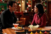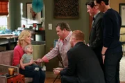 Tante MommyPhil (Ty Burrell, l.) hat mit Hilfe von Cameron (Eric Stonestreet, r.) und Mitchell (Jesse Tyler Ferguson) ein Haus verkauft und lädt die beiden gemeinsam mit Claire (Julie Bowen) als Dankeschön zum Essen ein.Bild: © ViacomCBS / Hopper Stone