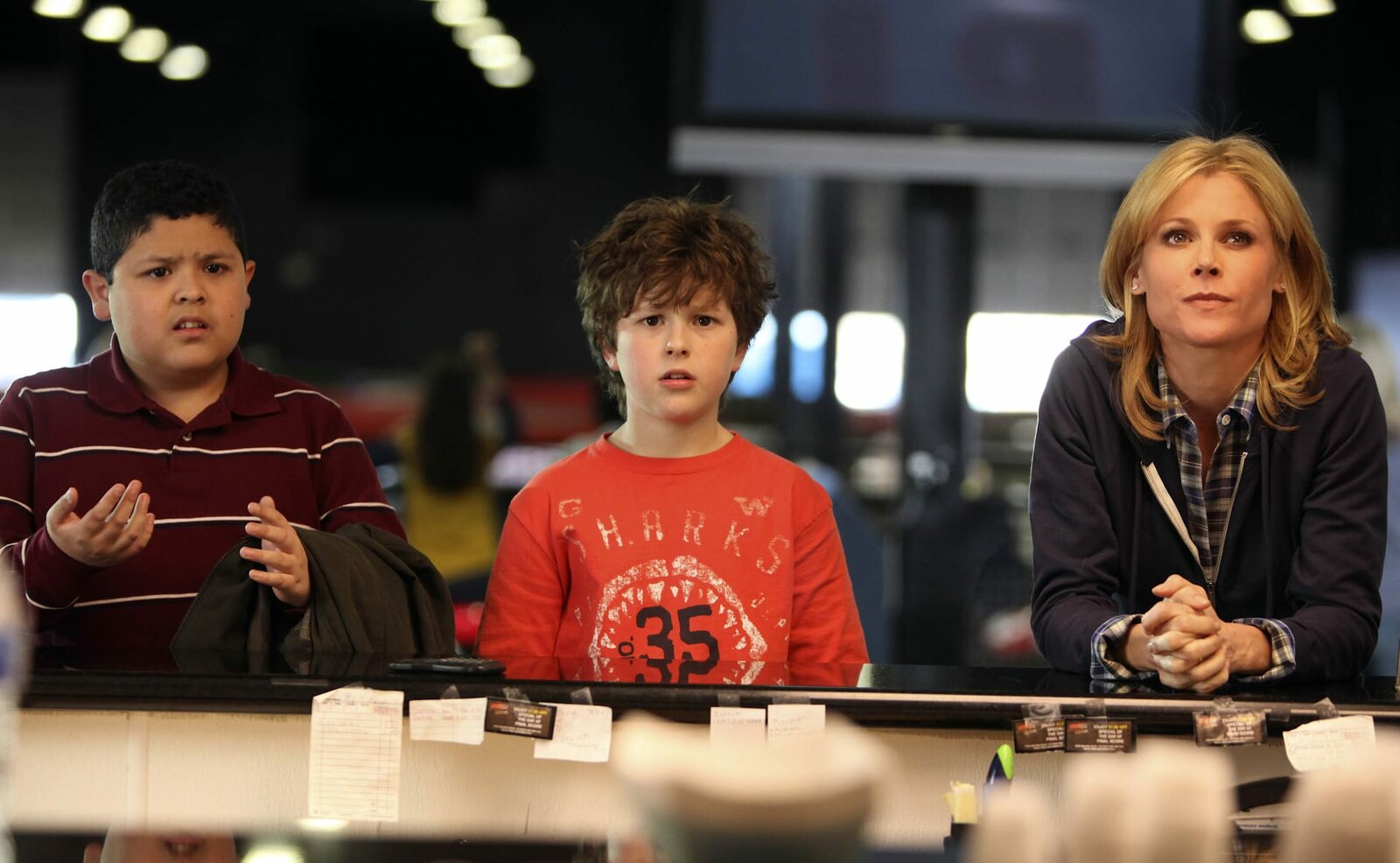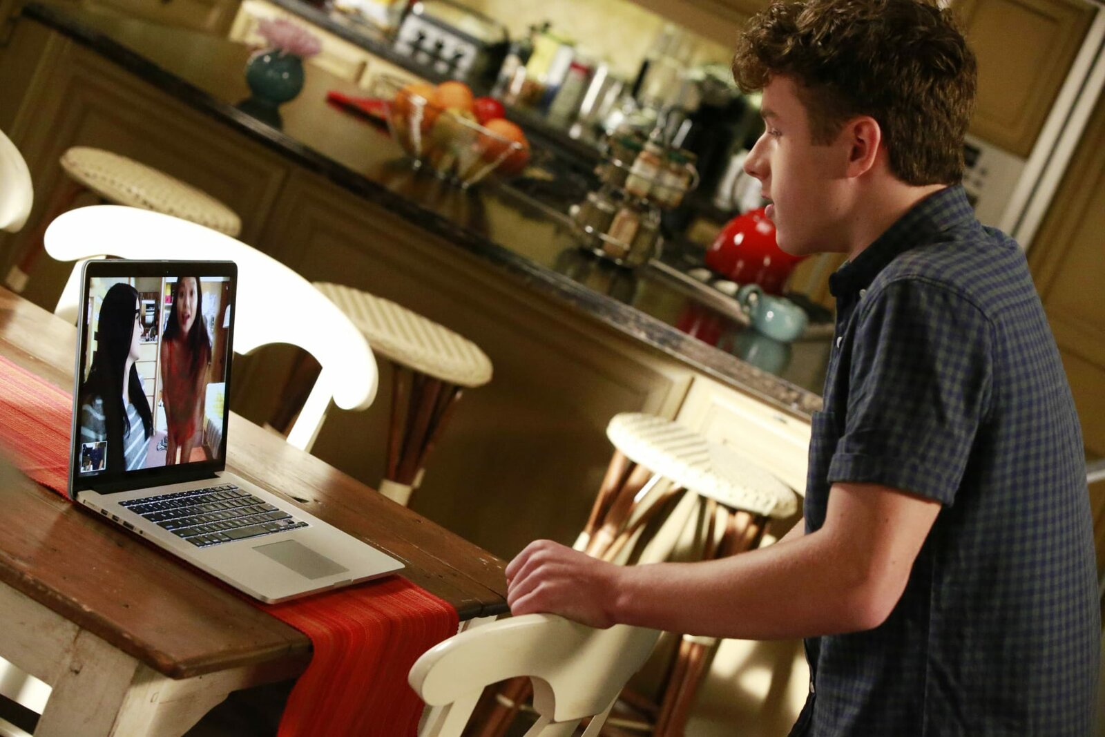 Die Eltern im HintergrundL-R: Manny Delgado (Rico Rodriguez), Luke Dunphy (Nolan Gould), Claire Dunphy (Julie Bowen)Bild: © ViacomCBS