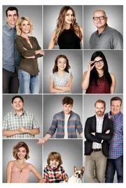 Ungeschickt zum Ziel1. Reihe v.l.: Phil (Ty Burrell), Claire (Julie Bowen), Gloria (Sofía Vergara), Jay (Ed O'Neill), 2. Reihe: Lily (Aubrey Anderson-Emmons, M.), Alex (Ariel Winter), 3. Reihe v.l.: Manny (Rico Rodriguez), Luke (Nolan Gould), Mitchell (Jesse Tyler Ferguson), Cameron (Eric Stonestreet), 4. Reihe: Haley (Sarah Hyland), Joe (Jeremy Maguire)Bild: © MG RTL D / © 2015-2016 American Broadcasting Companies. All rights reserved