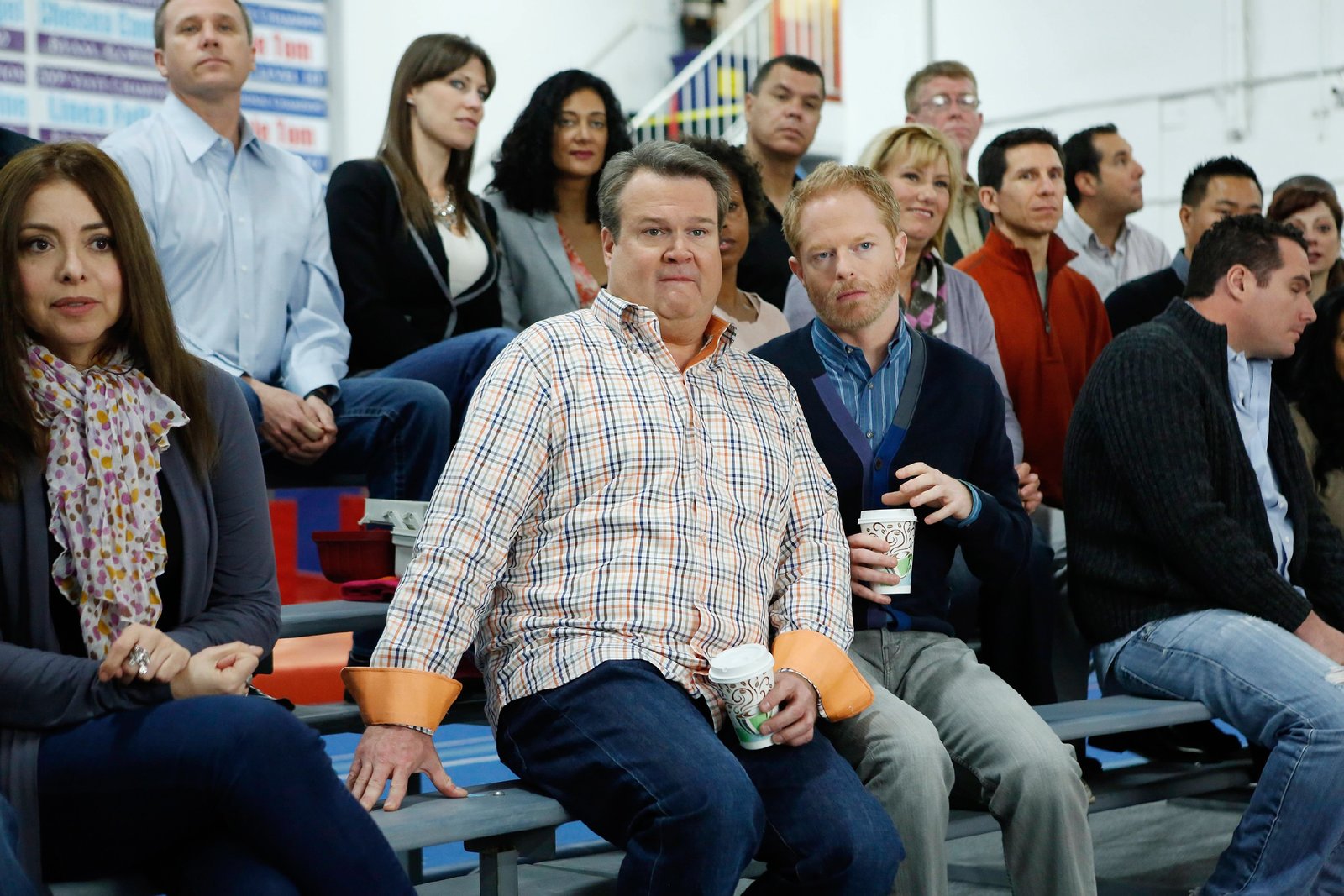 Homo ludensCameron (Eric Stonestreet, l.) und Mitchell (Jesse Tyler Ferguson) verfolgen gespannt Lilys Teilnahme an einem Turnwettbewerb.Bild: © RTL NITRO