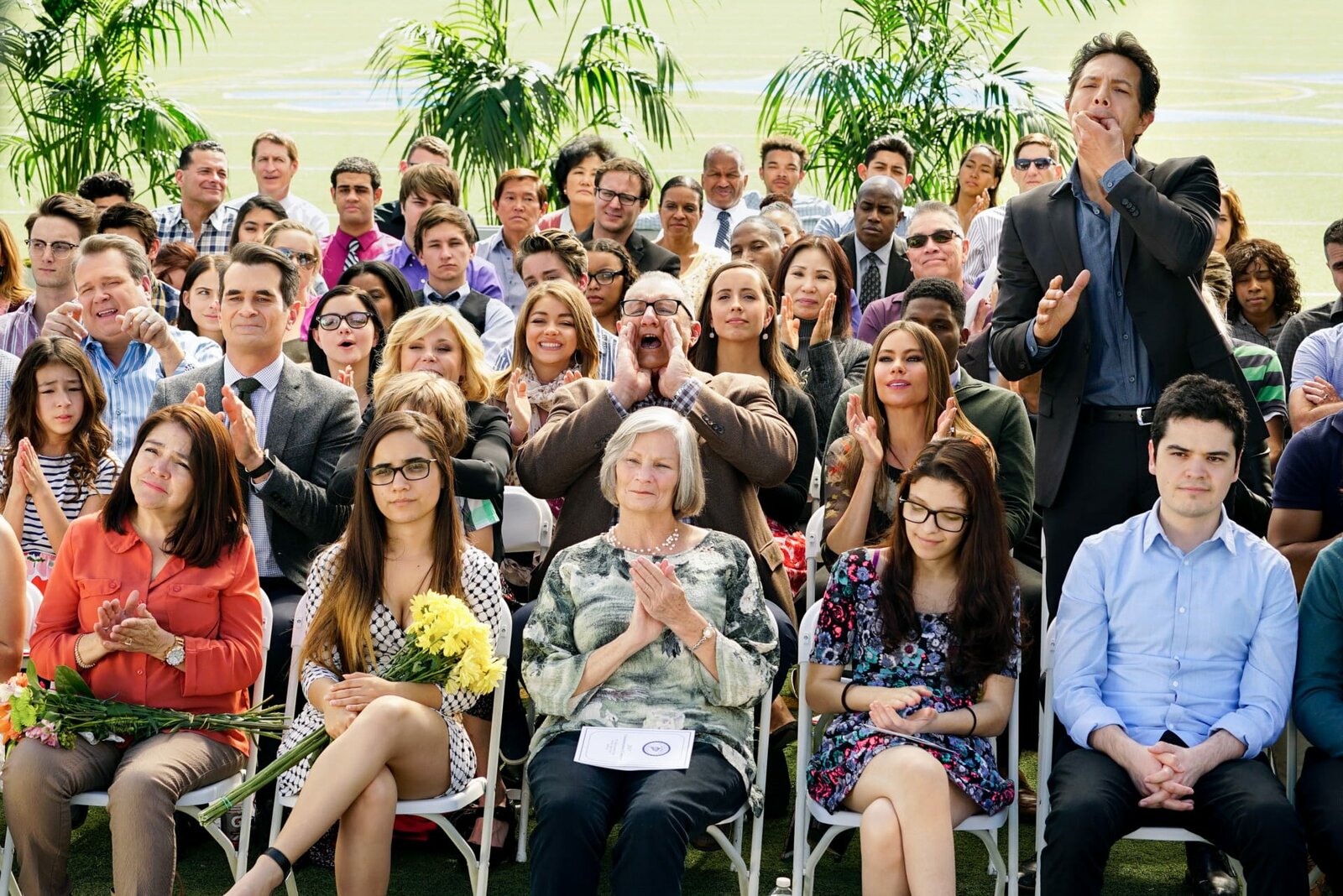 Absolventen mit AnhangAubrey Anderson-Emmons (Lily Tucker-Pritchett), Eric Stonestreet (Cameron Tucker), Ty Burrell (Phil Dunphy), Ariel Winter (Alex Dunphy), Julie Bowen (Claire Dunphy), Sarah Hyland (Haley Dunphy), Ed O'Neill (Jay Pritchett), Sofía Vergara (Gloria Delgado), Benjamin Bratt (Javier Delgado).Bild: © ORF/20th Century Fox