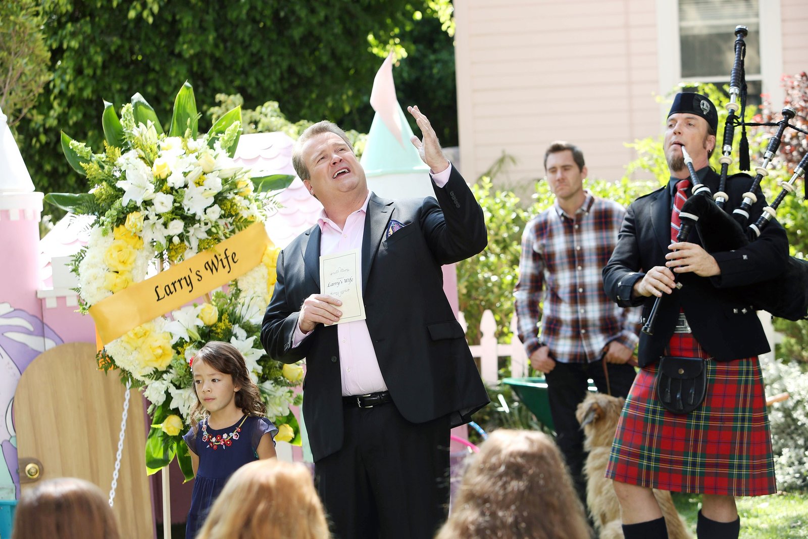 Larrys FrauLily (Aubrey Anderson-Emmons), Cameron (Eric Stonestreet, 2.v.l.), Angus (John McLean Allan, r.)Bild: © RTL NITRO