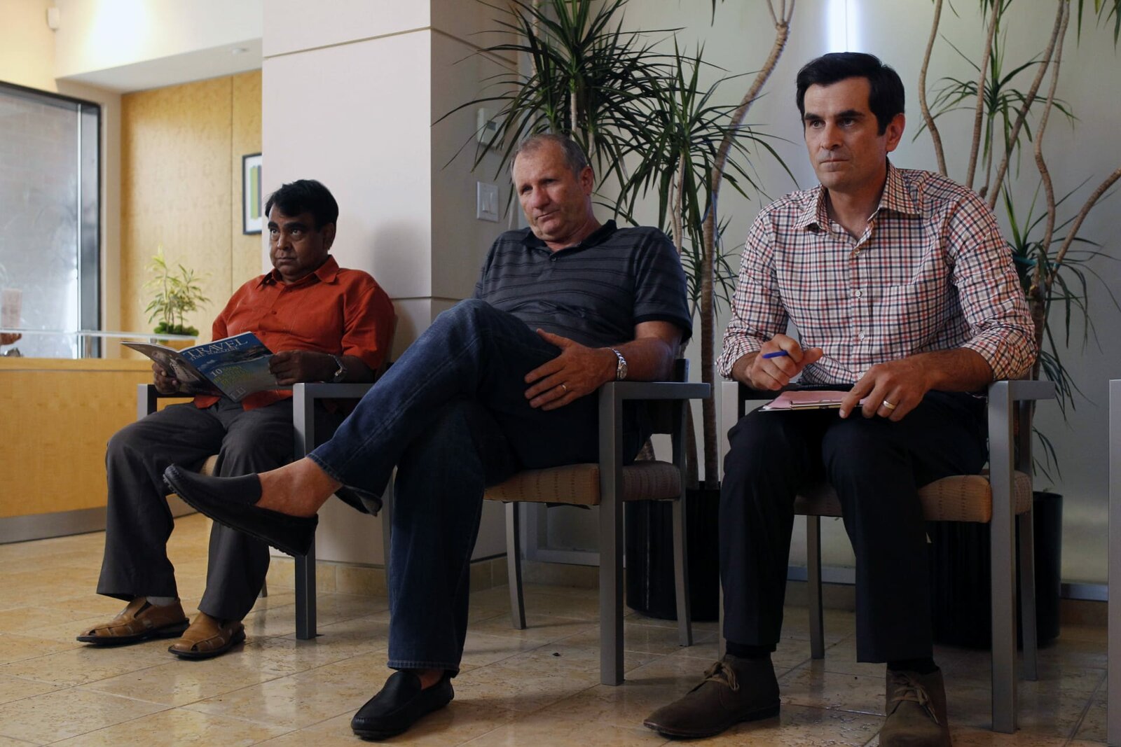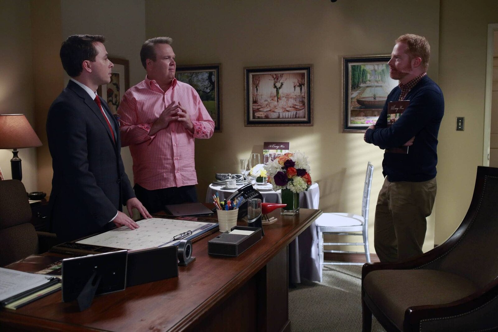 Spontan überlegtv.li.: Mr. Quigley (Matt Crabtree), Cameron Tucker (Eric Stonestreet), Mitchell Pritchett (Jesse Tyler Ferguson).Bild: © ViacomCBS