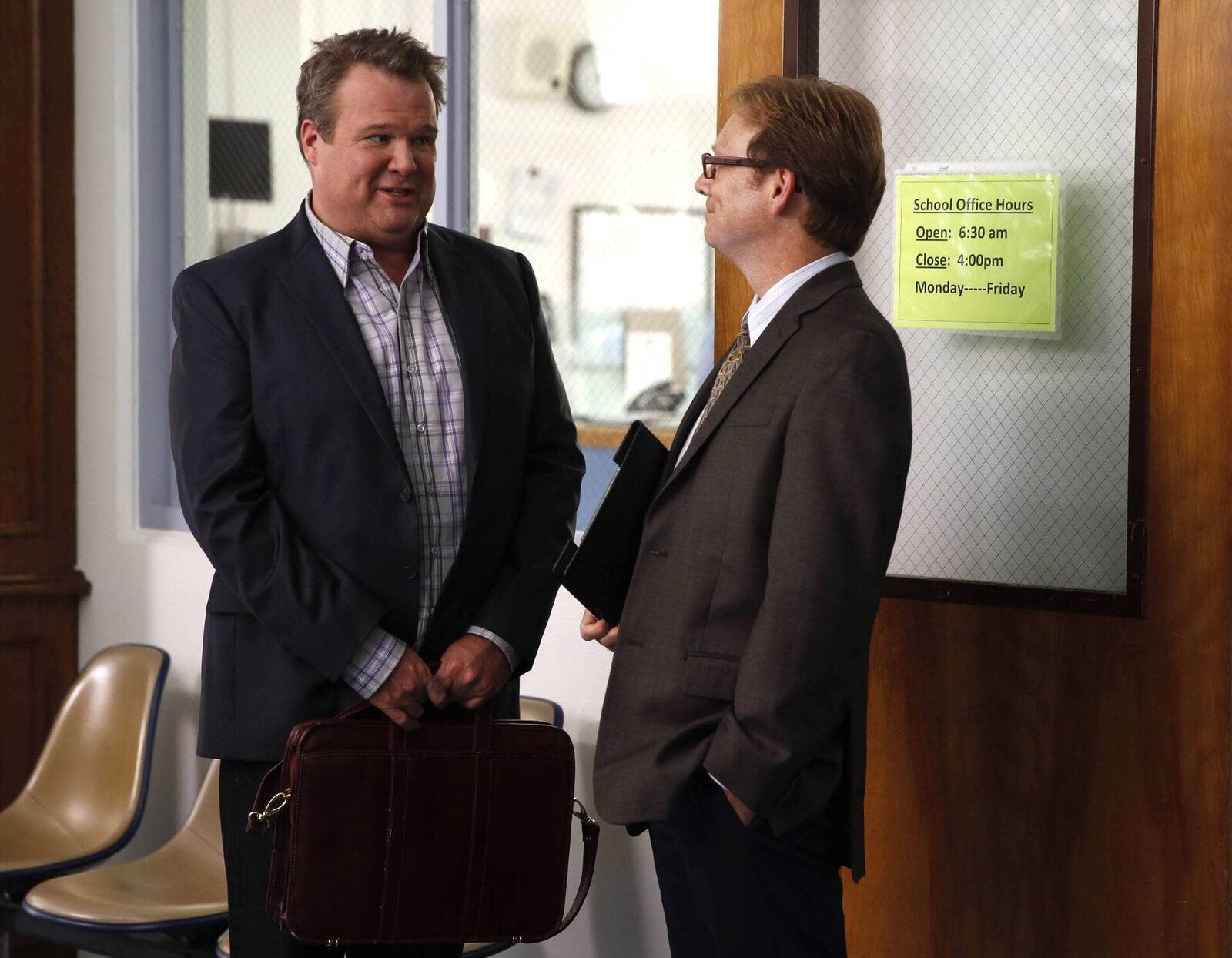 Erste Tagev.li. Cameron Tucker (Eric Stonestreet), Direktor Brown (Andrew Daly).Bild: © ViacomCBS
