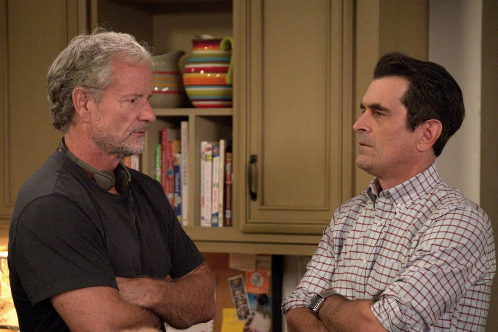 Harte SchuleJay Pritchett (Ed O'Neill, m.), Phil Dunphy (Ty Burrell, r.).Bild: © ViacomCBS / Hopper Stone