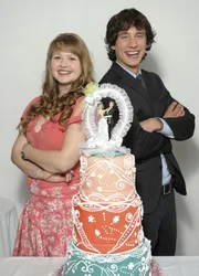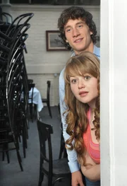 Molly & MopsMit dem Geld, das sie beim Konditoren-Wettbewerb verdient hat, eröffnet Molly ein Café mit ihren ganz persönlichen Spezialitäten. Unterstützt von Oma Klara und Azra hat Molly auch noch ein kleines Catering-Service aufgebaut - und dann verliebt sie sich auch noch in den jungen, gutaussehenden Fotografen Paul. Alles läuft gut, bis die Geschäftsführerin des trendigen Cafés "Neon & Blau" von gegenüber versucht, die lästige Konkurrenz loszuwerden. Im Bild: Monika Reithofer (Molly), Laurence Rupp (Paul).Bild: © ORF/Mungo Fil