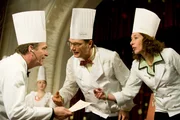 Das Leben ist kein GugelhupfMolly, Zuckerbäckerin aus Leidenschaft, hat Schulden und nimmt an einem großen Wettbewerb für Konditoren in Wien teil. Was sie nicht weiß: Der Wettbewerb wird als Live-Show im Fernsehen gesendet! Doch schon am ersten Tag geht alles schief, ihr Einreichexponat wird mutwillig zerstört. Sie muss mit Hilfe ihrer Hündin Mops, Oma und Azra improvisieren, um im Rennen zu bleiben. Ein attraktiver Mitbewerber macht ihr Leben nicht leichter. Im Bild: Herbert Knaup, Martin Brambach, Adele Neuhauser.Bild: © ORF/Mungo Fil