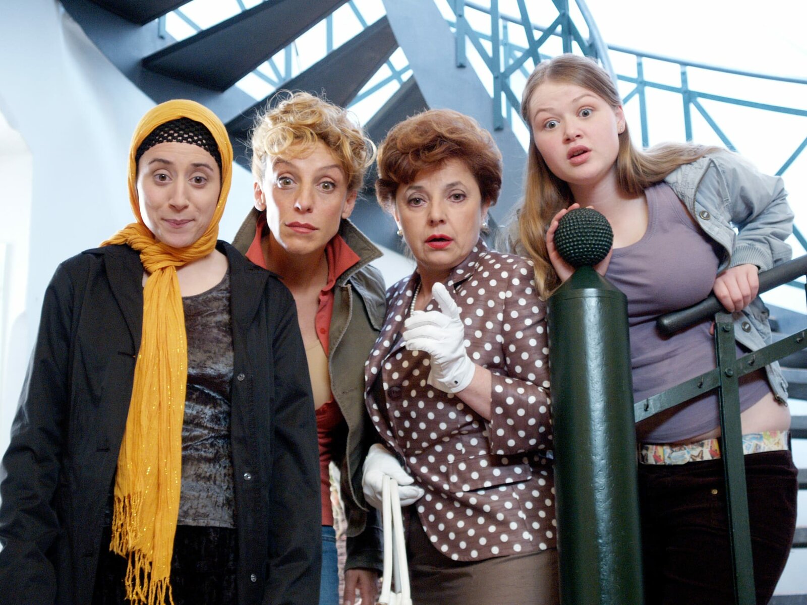 Molly & Mops"Molly & Mops", Molly ist eindeutig dicker als es Modezaren, Ernährungsjunkies und jene, die immer schon gewusst haben wollen, was schön und gut und richtig ist, erlauben. Molly hat ihnen allen aber vor allem drei Dinge voraus. Sie weiß, wer sie sein will, sie weiß was sie sein will und sie hat Kraft genug, es zu erreichen. Darüber hinaus hat sie, nicht zu vergessen, Mops, den Hund, der mit ihr spricht. Und dass sie eine begnadete Mehlspeisköchin ist, hilft ihr sogar darüber hinweg, dass ihr geliebter Florian eine andere heiratet, dass sie aus ihrem Dorf wegzieht und allein und ohne Geld, das ihr auf der Reise gestohlen wurde, in Salzburg strandet.Im Bild (v.li.): Atischeh Hannah Braun (Azra), Sissi Perlinger (Gabi), Monika Baumgartner (Oma Klara), Monika Theresia Reithofer (Molly).Bild: © ORF/Mungo Film/Marc Haader