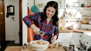 Lunch auf der FarmMollys Mann Nick und sein Dad bereiten das Feld auf die nächste Saison vor und Molly Yeh überrascht sie mit einem herzhaften Lunch. Es gibt Hackbällchen im Brotteig, dazu gegrilltes Kürbisgemüse mit dem gewissen Etwas. Außerdem: Cremige Polenta mit knusprigem Speck und Mangold und Zimt-Baisers auf knusprigem Keks-Crunch.Bild: © HGTV
