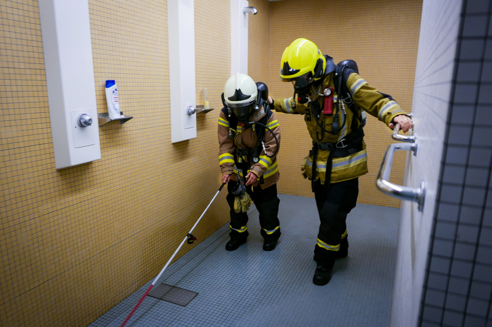 Mona mittendrin bei der BerufsfeuerwehrMona mittendrin bei der Berufsfeuerwehr Staffel 4 Herbst 2019 Folge 1 Mit verbundenen Augen und Atemschutzgerät macht Mona Vetsch den Einführungstest bei der Berufsfeuerwehr Basel SRFBild: © SRF1