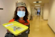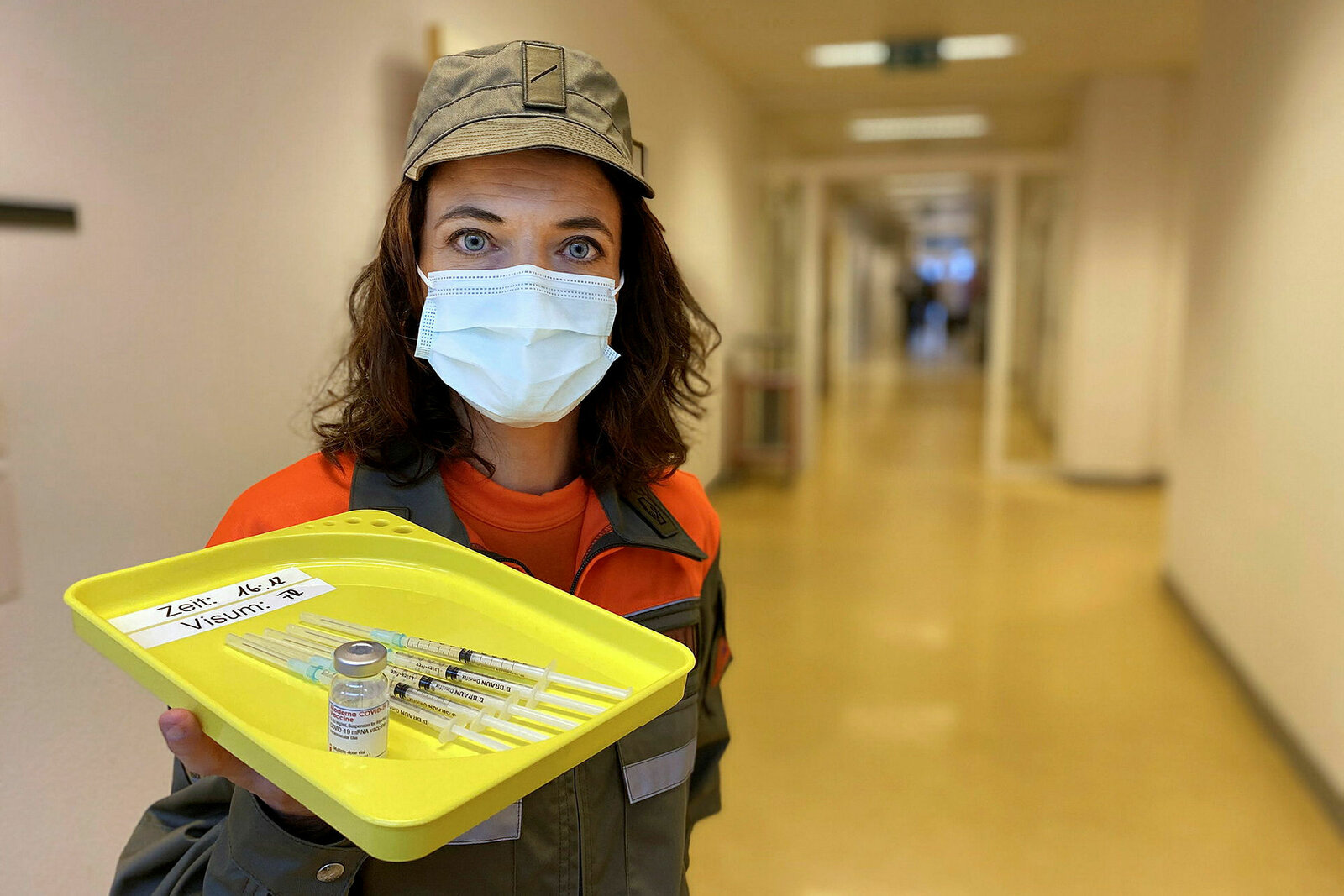 Mona mittendrin im ImpfzentrumMona mittendrin Im Impfzentrum Zivilschützerin Mona Vetsch mit vorbereitetem Covid-19-Impfstoff SRFBild: © SRF1