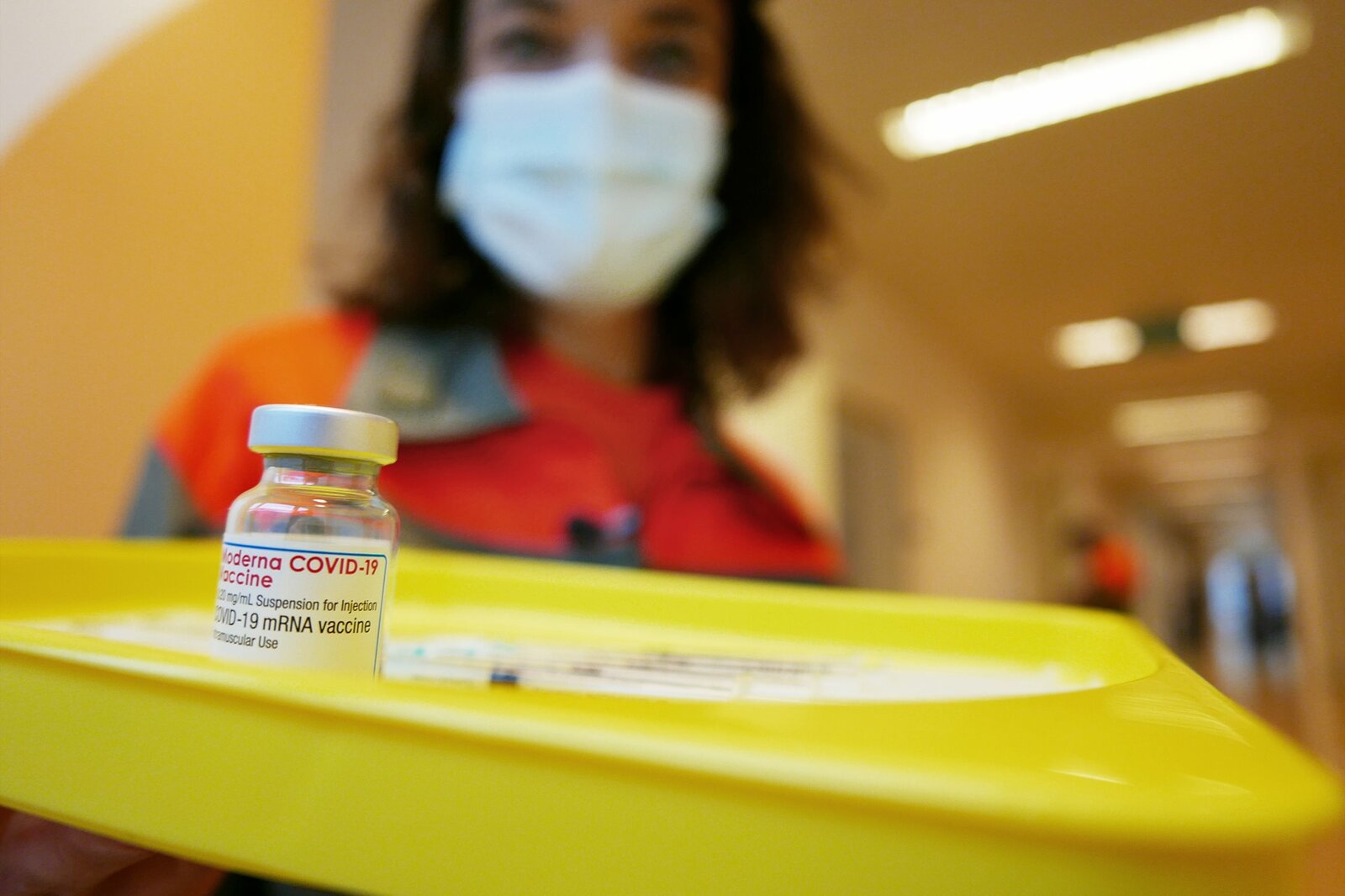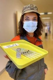 Mona mittendrin im ImpfzentrumZivilschützerin Mona Vetsch mit vorbereitetem Covid-19-ImpfstoffBild: © SRF