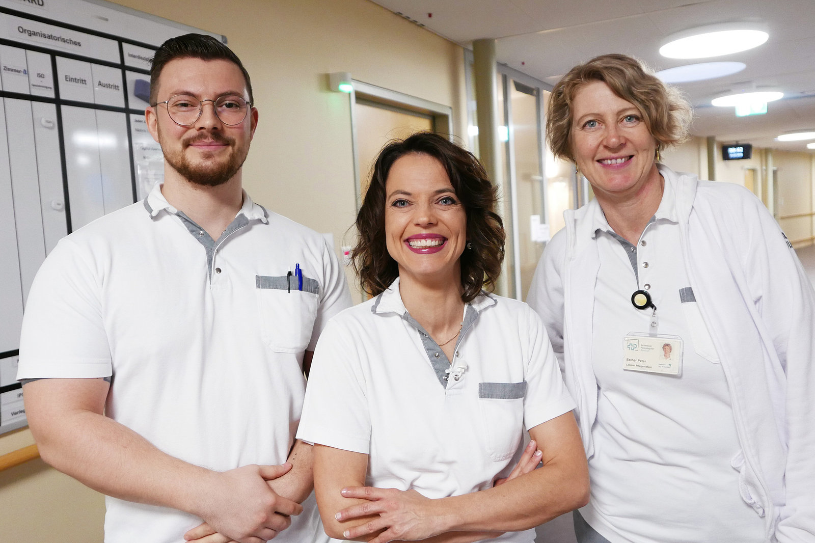 Mona mittendrin bei den ParaplegikernMona mittendrin bei den Paraplegikern Mona Vetsch mit Pflegefachmann Till Bertschi und Stationsleiterin Esther Peter- Spengler auf der Pflegestation H. 2019 SRFBild: © SRF1