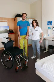 Mona mittendrin bei den ParaplegikernMona mittendrin bei den Paraplegikern Mona Vetsch mit Jürg Rusch, der seit seinem Gleitschirmunfall Paraplegiker ist und hofft wieder zu laufen. 2019 SRFBild: © SRF1