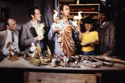Mehr seelisch, verstehn's?Wie gut, daß es den Monaco Franze gibt! Denn als sein "Spatzl" wegen einer nicht ganz echten Heiligenfigur Ärger bekommt, ist es ihr Gatte, der das Problem löst... Von links: der Kriminaldirektor (Franz Geiger), Manni Kopfeck (Karl Obermayr), Gustl (Gerhard Zemann), Trudl (Gaby Herbst) und Franz Münchinger (Helmut Fischer).Bild: © BR/balance-film