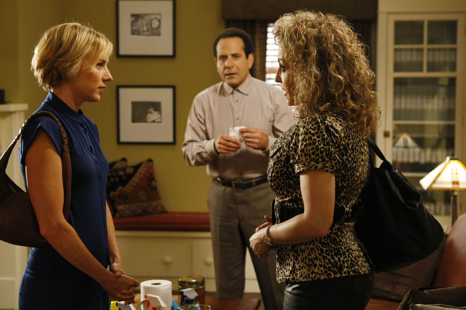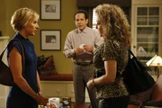 Mr. Monk mit Natalie - und Sharona?Monk (Tony Shalhoub) befürchtet nicht ganz zu Unrecht Rivalitäten zwischen Natalie (Traylor Howard, li.) und seiner damaligen Assistentin Sharona (Bitty Schram).Bild: © MG RTL D / Universal