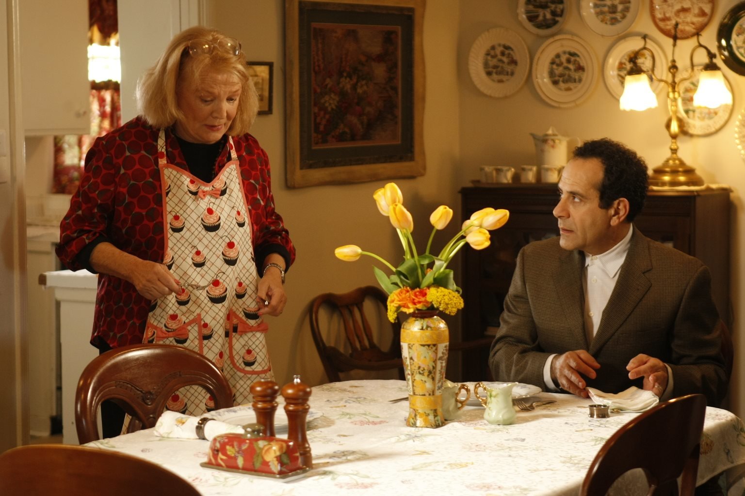 Mr. Monk feiert nicht freiwillig GeburtstagNatalie (Traylor Howard) kann Monk (Tony Shalhoub) kaum beruhigen, als dieser begeistert den neuartigen Staubsauger entdeckt, der sich selbst reinigen kann.Bild: © USA Network / Peter "Hopper" Stone Lizenzbild frei