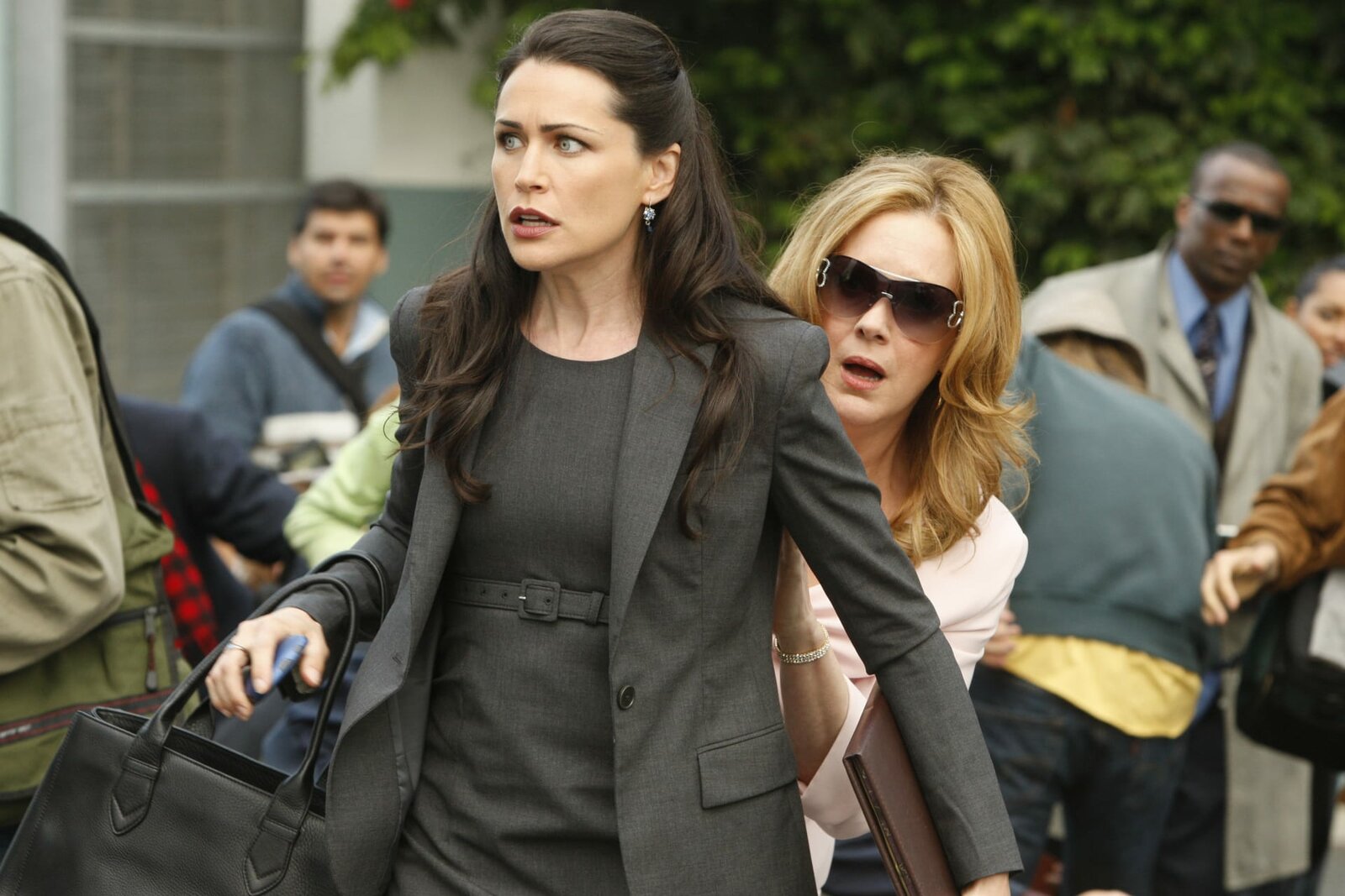 Mr. Monks LieblingsserieDie Schauspielerin Christine Rapp (Elizabeth Perkins, r.) kann nur knapp einem Mordanschlag entgehen. Ihre Assistentin Kim Kelly (Rena Sofer, l.) steht noch immer unter Schock ...Bild: © ATV2