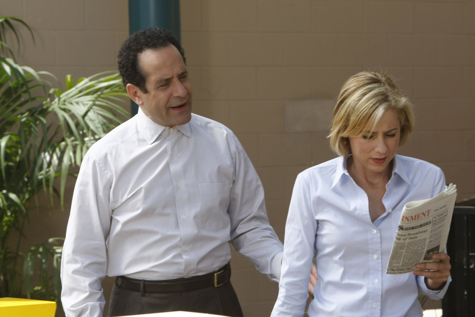 Mr. Monk, die Schönen und das BiestNatalie (Traylor Howard, r.) ist entsetzt: Die Kritik über das Musical, in dem ihre Tochter mitgewirkt hat, ist alles andere als positiv. Adrian Monk (Tony Shalhoub, l.) versucht sie zu besänftigen, was ihm aber nicht recht gelingen mag ...Bild: © ProSieben Media AG © USA Network