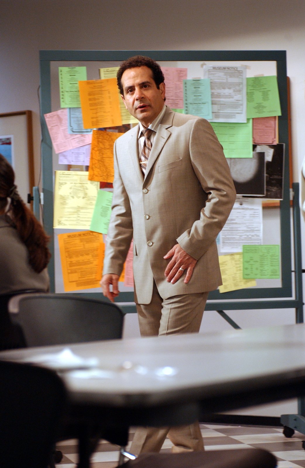 Mr. Monk als BürohengstDer aktuelle Fall zwingt Monk (Tony Shalhoub) dazu, undercover zu ermitteln. Hierfür lässt er sich als angeblicher Börsenspezialist in einem Büro einstellen.Bild: © ProSieben Media AG © Universal Pictures