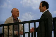 Mr. Monk schießt auf den WeihnachtsmannAuf wessen Seite steht der Anwalt Garrett Pric (Larry Miller, r.)? Glaubt er Monks (Tony Shalhoub, l.) äußerst fragwürdige Geschichte?Bild: © ProSieben Media AG © USA Network