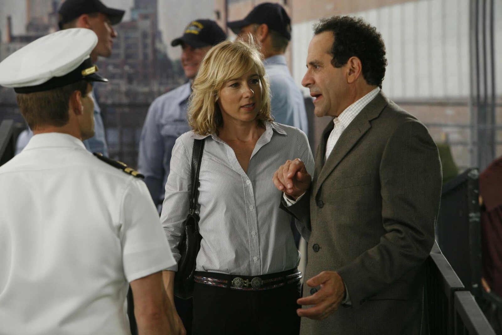 Mr. Monk geht unterPictured: (l-r) Lt. Albright (Casper Van Dien) , Natalie Teeger (Traylor Howard), Adrian Monk (Tony Shalhoub)Bild: © Warner TV Serie