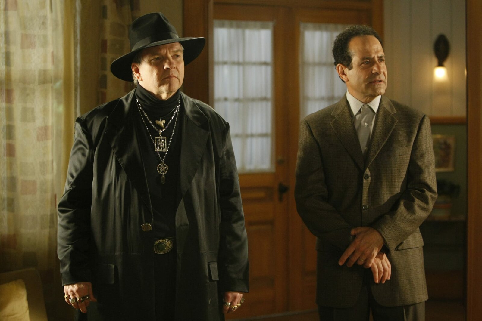 Mr. Monk im Unheil des VoodoosL-R: Reverend Hadley Jorgensen (Meat Loaf), Adrian Monk (Tony Shalhoub)Bild: © Warner TV Serie