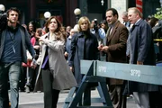 Mr. Monk schießt auf den WeihnachtsmannNatalie Teeger (Traylor Howard, 3.v.r.), Monk (Tony Shalhoub, 2.v.r.) und Captain Leland Stottlemeyer (Ted Levine, r.) arbeiten an einem neuen Fall ...Bild: © ProSieben Media AG © USA Network