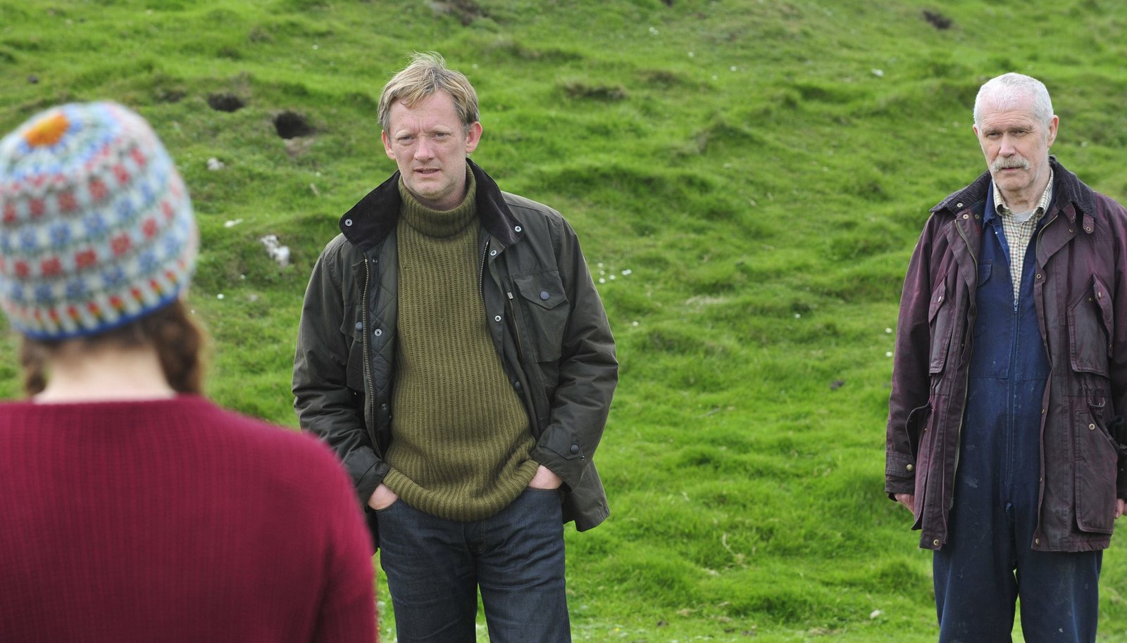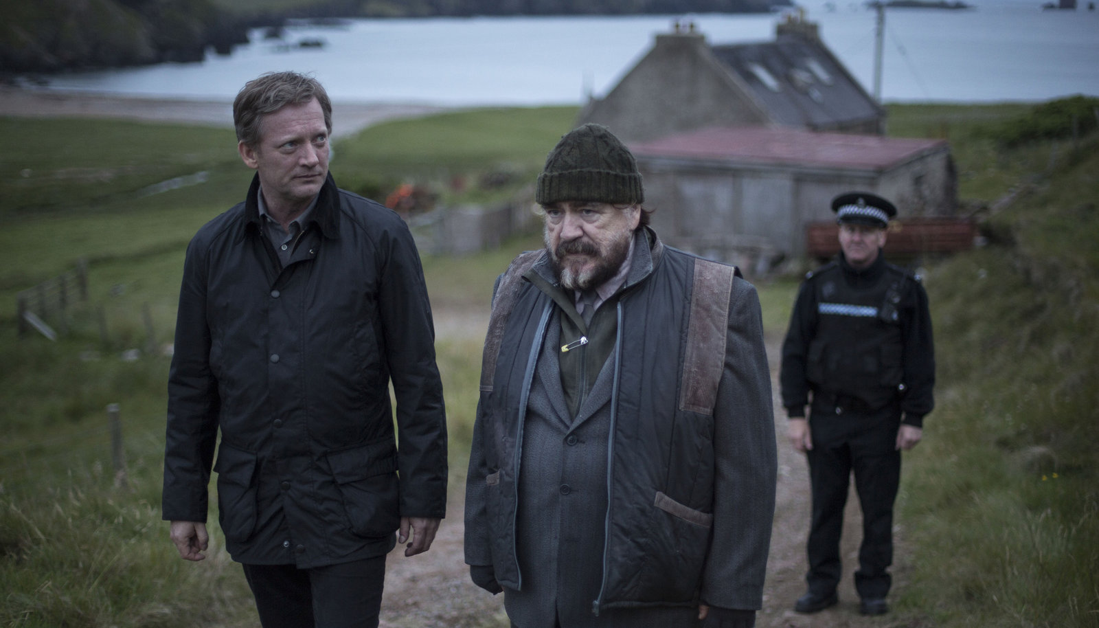 Die Nacht der Raben (1)Detective Inspector Jimmy Perez (Douglas Henshall, li.) glaubt nicht daran, dass der kauzige Magnus Bain (Brian Cox, Mitte) der Täter ist.Bild: © ARD Degeto/ITV Studios