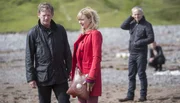 Jenny Belshaw (Marnie Baxter) beobachtet, wie die Aktivistin Evie Watt (Kari Corbett, Mitte) versucht dem Fischfarmer Joe Dalhousie (David Hayman) zu helfen.Bild: © MDR/ARD Degeto/ITV Studios