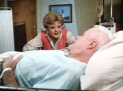 Spieglein, Spieglein an der Wand - Teil 2Jessica Fletcher (Angela Lansbury) besucht ihren alten Freund Seth Hazlitt (William Windom) im Krankenhaus, der sich an einem Apfel vergiftet hat.Bild: © Sat.1 Gold