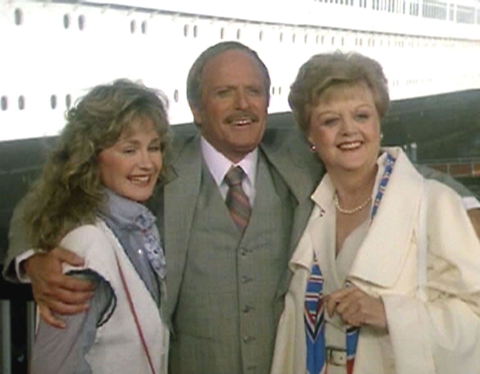 Gefährliche KreuzfahrtenJessica Fletcher (Angela Lansbury, re) macht gemeinsam mit ihrer Nichte Pamela (Belinda Montgomery) eine Kreuzfahrt. Pamelas Vater Marshall (Jason Evers) will noch schnell ein Foto von allen machen lassen.Bild: © Sat.1 Gold