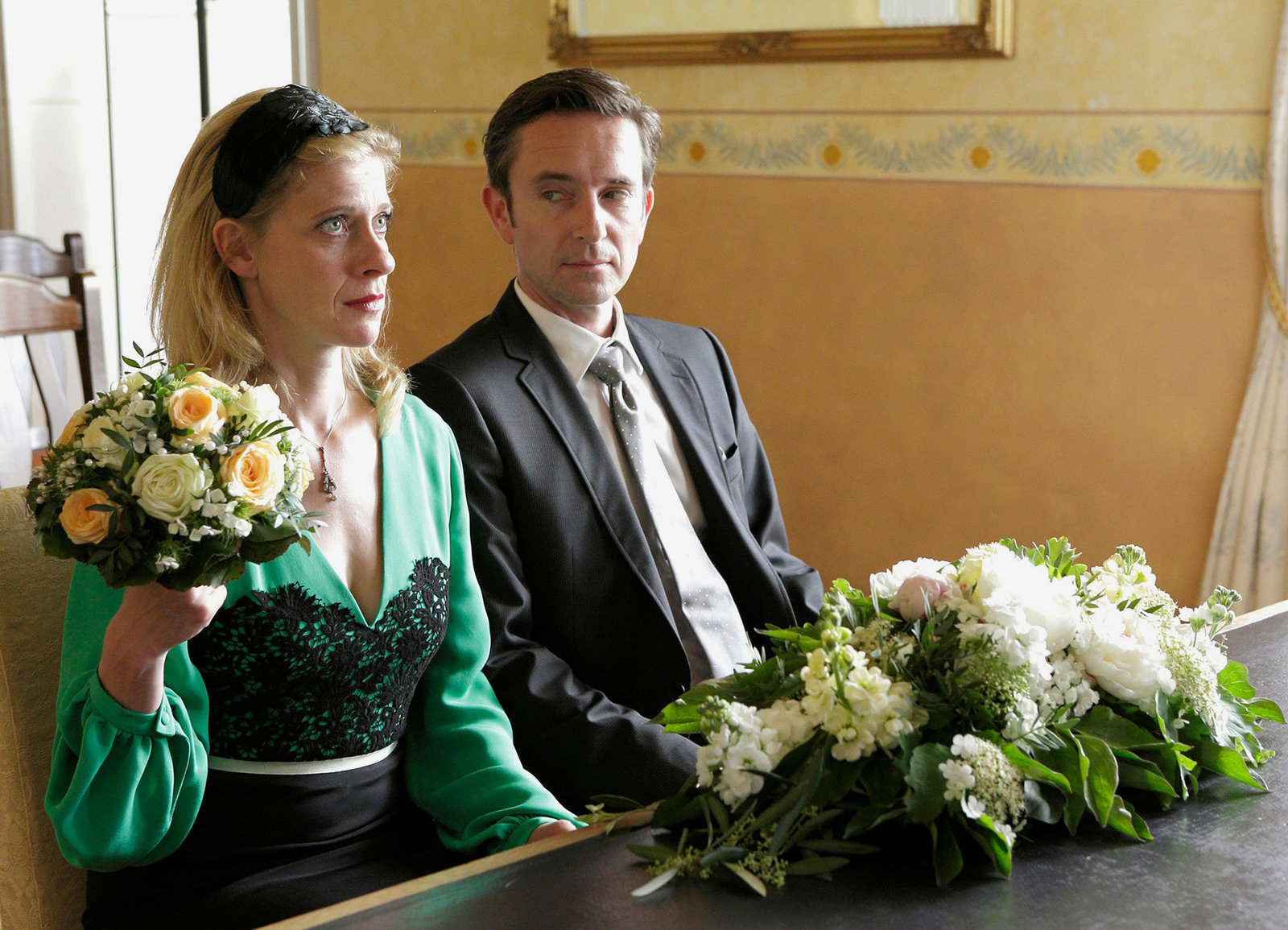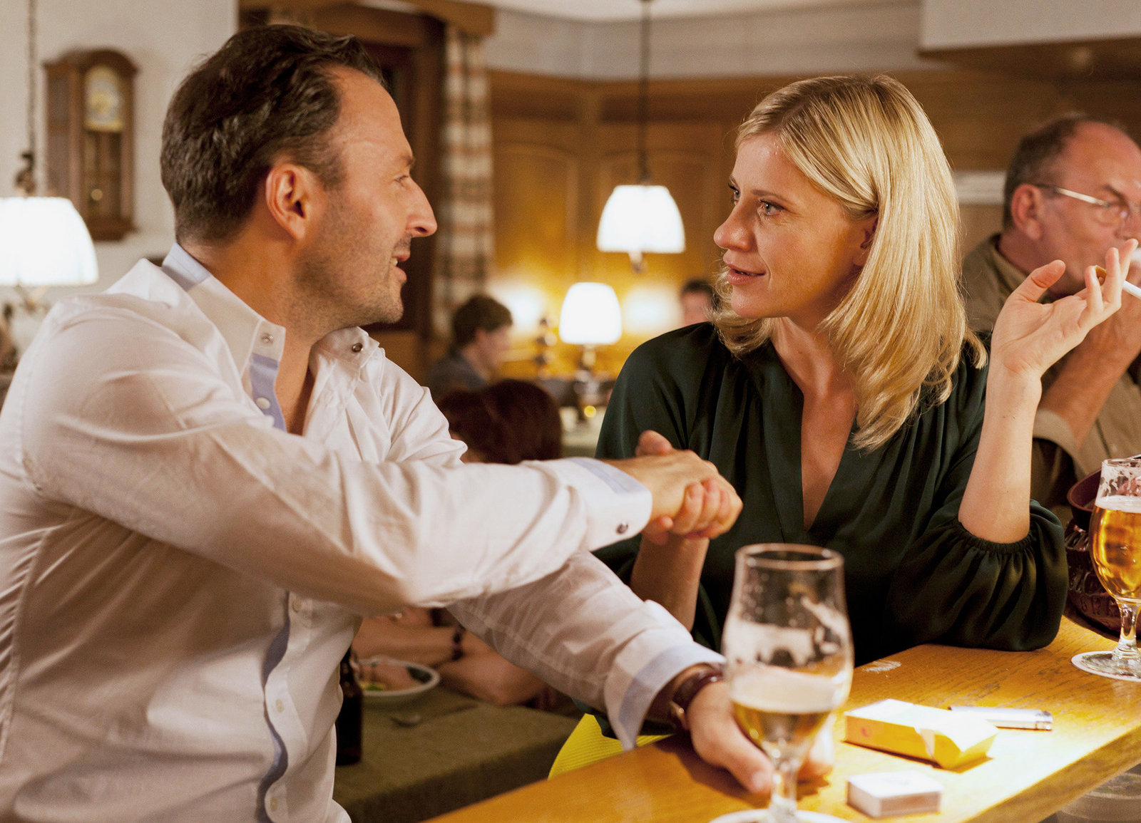 Lovehotel TraubeKommen sich erneut näher: Caroline Peters als Sophie Haas, Johann von Bülow als Jan SchulteBild: © SRF/ARD