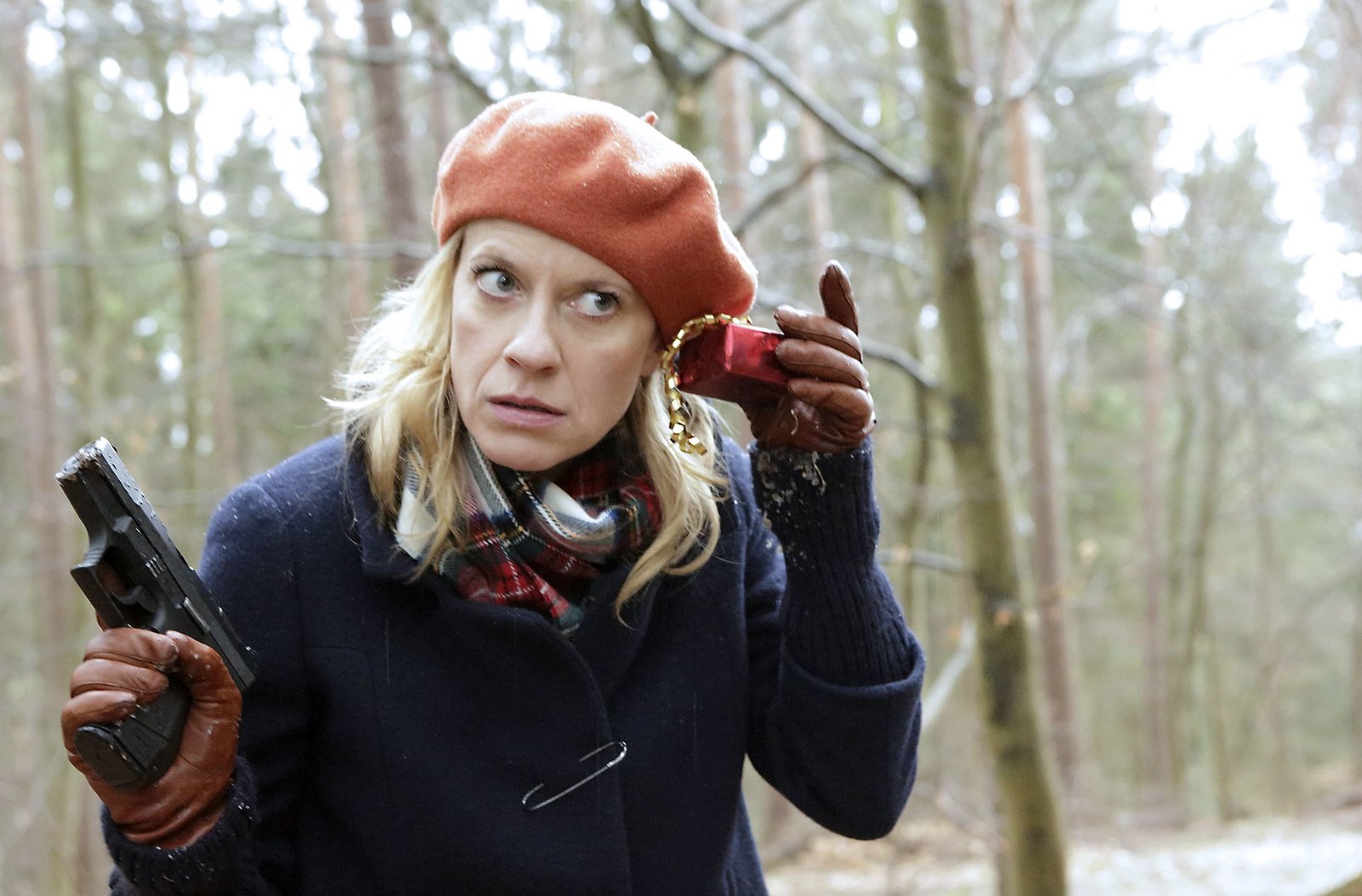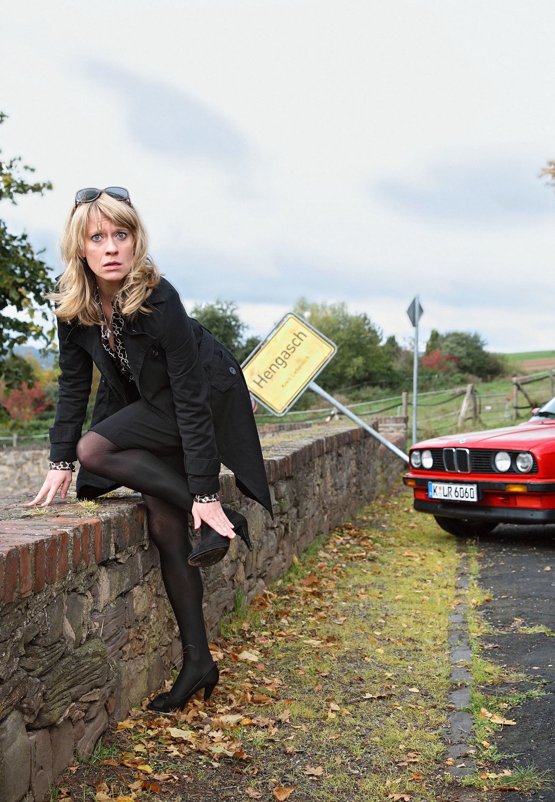 Ausgerechnet EifelSTAFFEL 1: 15 Uhr im Ersten. Mit high heels in Hengasch: Die Kölner Kriminalkommissarin Sophie Hass (Caroline Peters), Single-Frau und überzeugte Großstädterin, wird von ihrem Chef in die hinterste Eifel nach Hengasch zwangsversetzt.Bild: © WDR/Jens van Zoest.