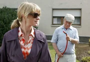 WaldeslustSophie Haas (Caroline Peters, r.) ist wenig begeistert, dass ihr Vater Hannes Haas (Hans Peter Hallwachs, l.) die Einladung von Heike Schäffer angenommen hat.Bild: © ARD/Frank Dicks