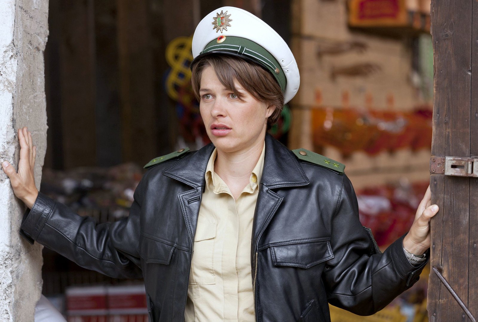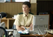 MikadoBärbel Schmied (Meike Droste) ist in einen Gully gefallen und hat sich das Bein gebrochen. Während Sophie Hass, die an allem schuld ist, auf Verbrecherjagd geht, muss Bärbel mit Gipsbein das Revier hüten.Bild: © ARD/Frank Dicks