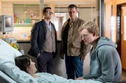Schwarzer PeterLars (Ingo Naujoks, 2.v.l.) und Finn (Sven Martinek, 2.v.r.) begleiten Dirk Becker (Sammy Scheuritzel, r.) bei einem Besuch seiner Mutter Uta Becker (Angeline Anett Heilfort),Bild: © ARD/Georges Pauly