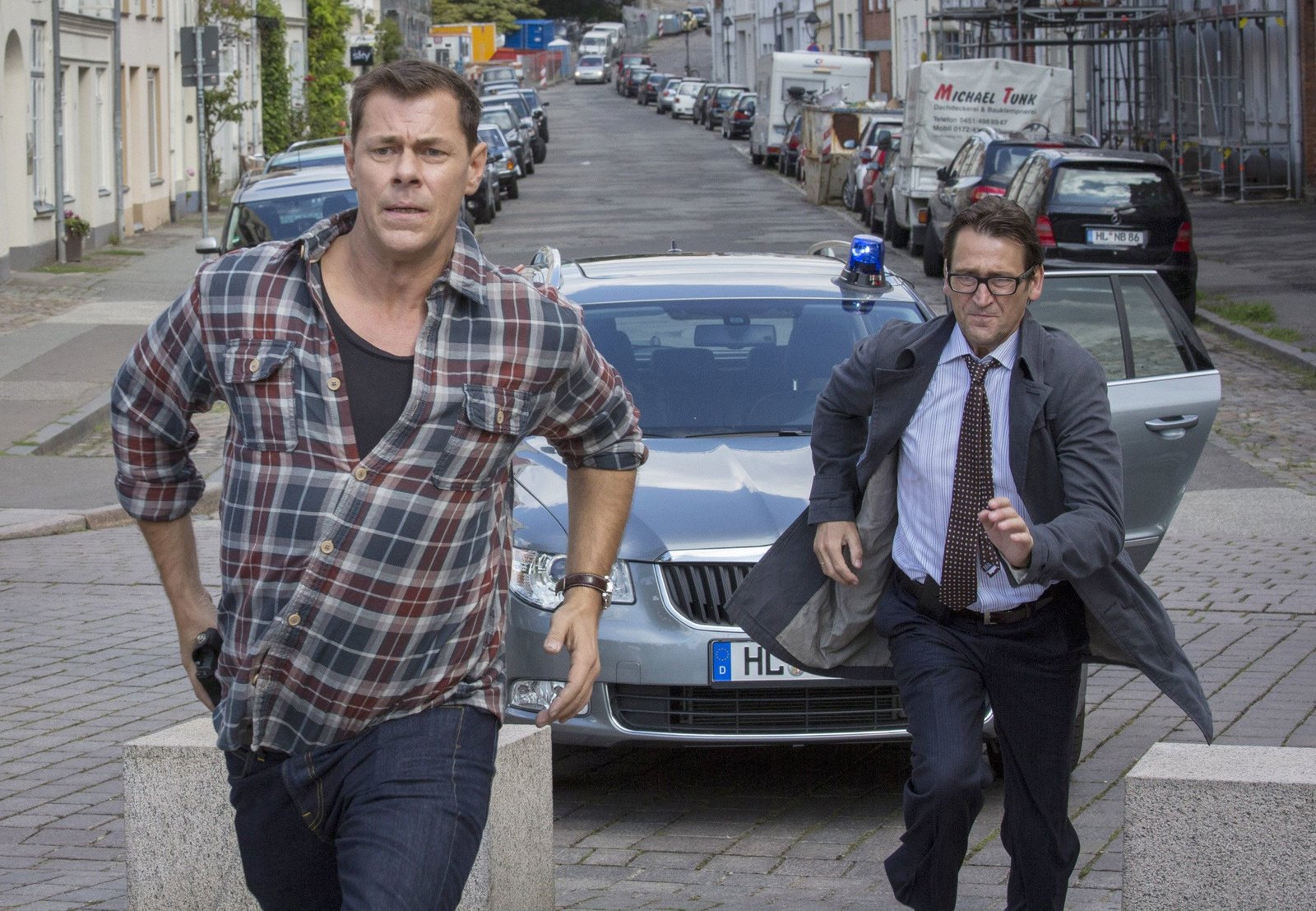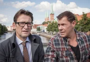 Auf der KlippeFinn Kiesewetter (Sven Martinek, r.) und Kriminaldirektor Lars Englen (Ingo Naujoks, l.) haben eine heiße Spur im Fall des toten Apothekers Rosenthal und müssen schnell handeln.Bild: © NDR/ARD/Georges Pauly