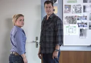 Tödlicher ZweifelDer Wunsch nach schnellem Sex wird einem Pharmavertreter zum Verhängnis. Vergewaltigt und mit einer Krawatte zu Tode stranguliert wird er in einem Lübecker Hotelzimmer gefunden. Finn (Sven Martinek, r.) und Lars (Ingo Naujoks, l.) begutachten mit ihrer neuen Kollegin Nina Weiss (Julia Schäfle, M.) den Tatort.Bild: © ARD/Gordon Timpen
