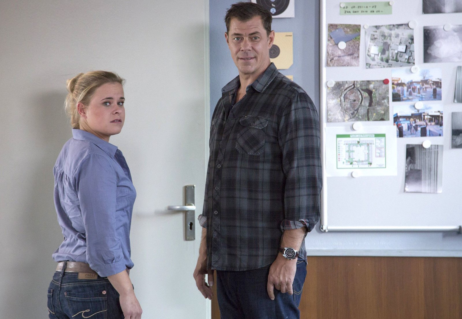 BauernopferARD HEITER BIS TÖDLICH - MORDEN IM NORDEN, II. Staffel der Krimiserie am Vorabend mit 16 neuen Folgen, Folge 27 "Bauernopfer" am Dienstag (11.06.13) um 18.50 Uhr im Ersten. Finn Kiesewetter (Sven Martinek, l.) und Sandra Schwartenbeck (Marie-Luise Schramm, r.) ermitteln auf einem abgelegenen Bauernhof. Die junge Frau von Bauer Karl Bruns wurde tot auf einem Acker gefunden, erschlagen mit einem Maulschlüssel.Bild: © ARD/Georges Pauly