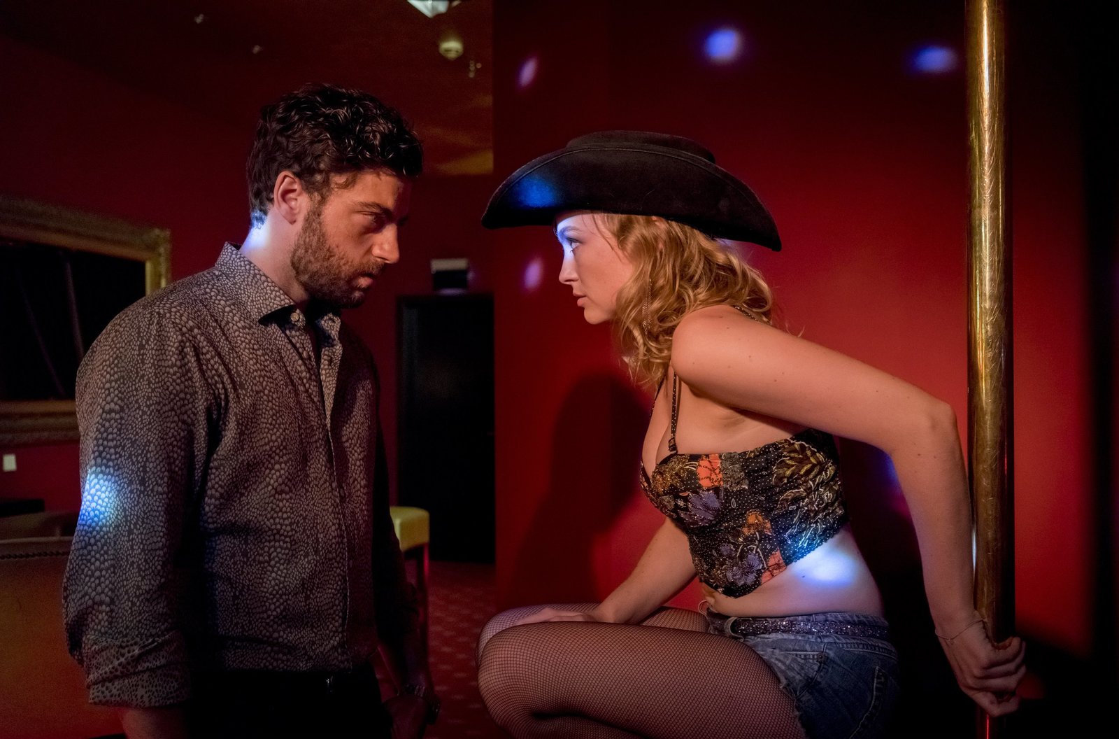 BernsteinfieberStripclub-Besitzer Bojan Vesic (Timur Isik, l.), redet beschwörend auf die Tänzerin Vanessa Zumdick (Kyra Sophia Kahre, r.) ein.Bild: © MDR/ARD/Georges Pauly