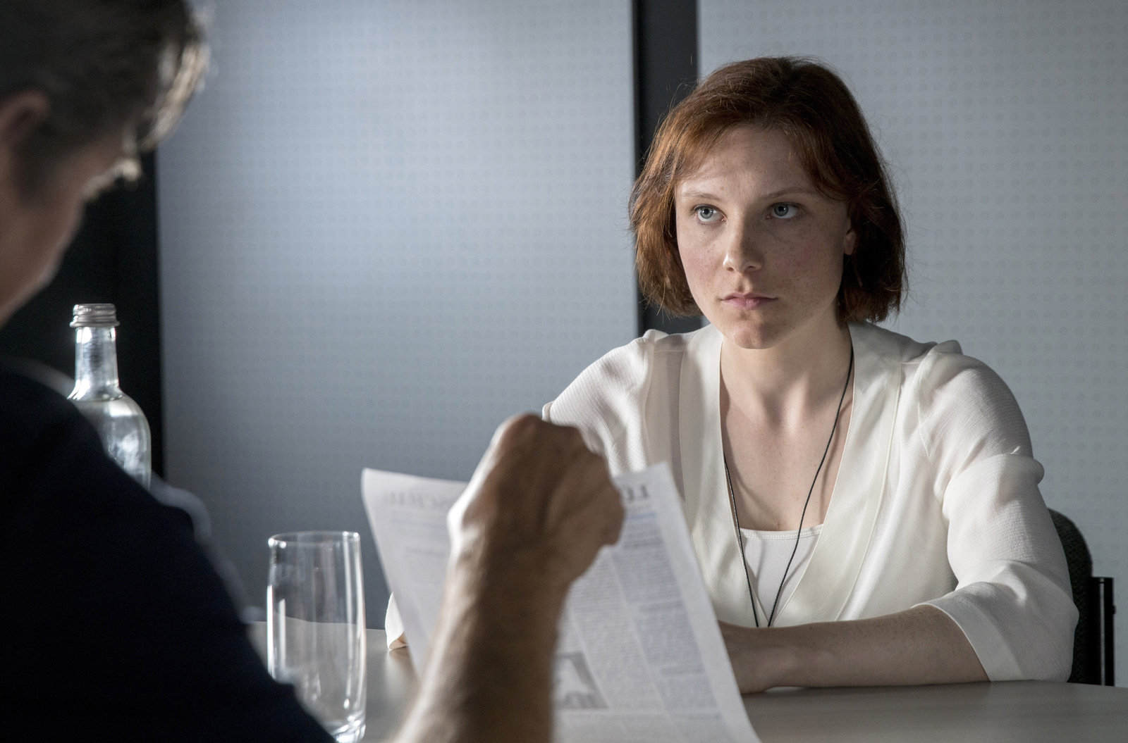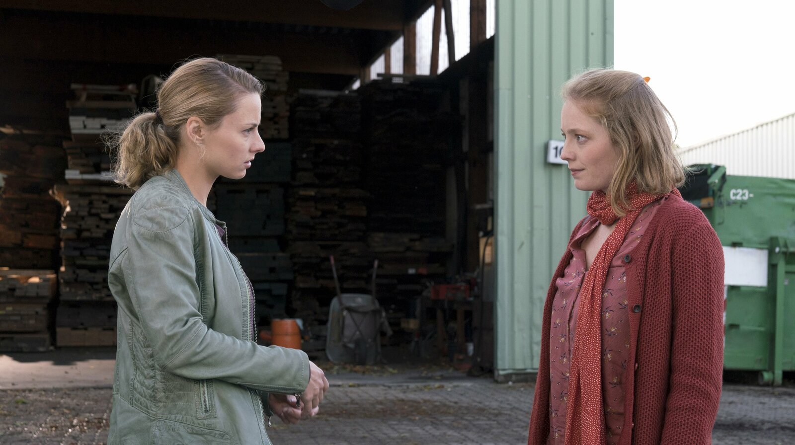 Jäger und SammlerNina (Julia Schäfle, r.) befragt Gaby Zinke (Leonie Benesch, r.). Die junge Assistentin der Geschäftsleitung war als einzige mit Georg befreundet.Bild: © ARD/Georges Pauly