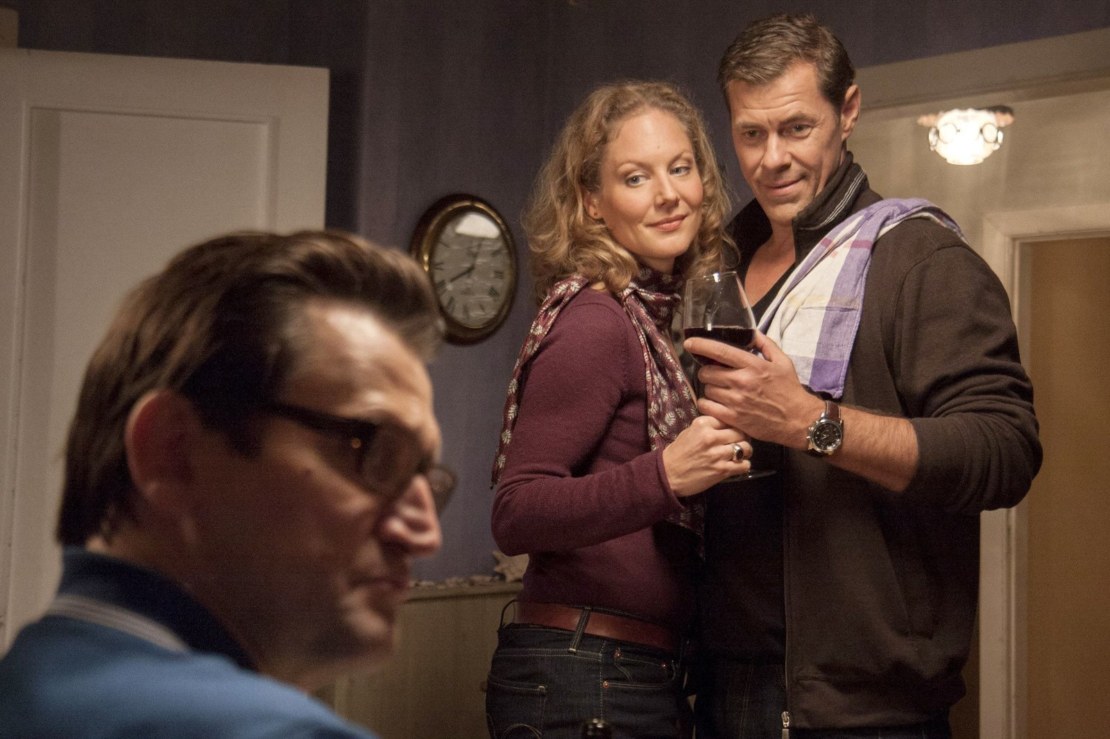AusgeblutetWas hat Alexander Voss (Oliver Stritzel, r.) mit dem Ehepaar Hilgen (Jytte-Merle Böhrnsen, l. und Mirko Lang, M.) zu tun?Bild: © ARD/Georges Pauly