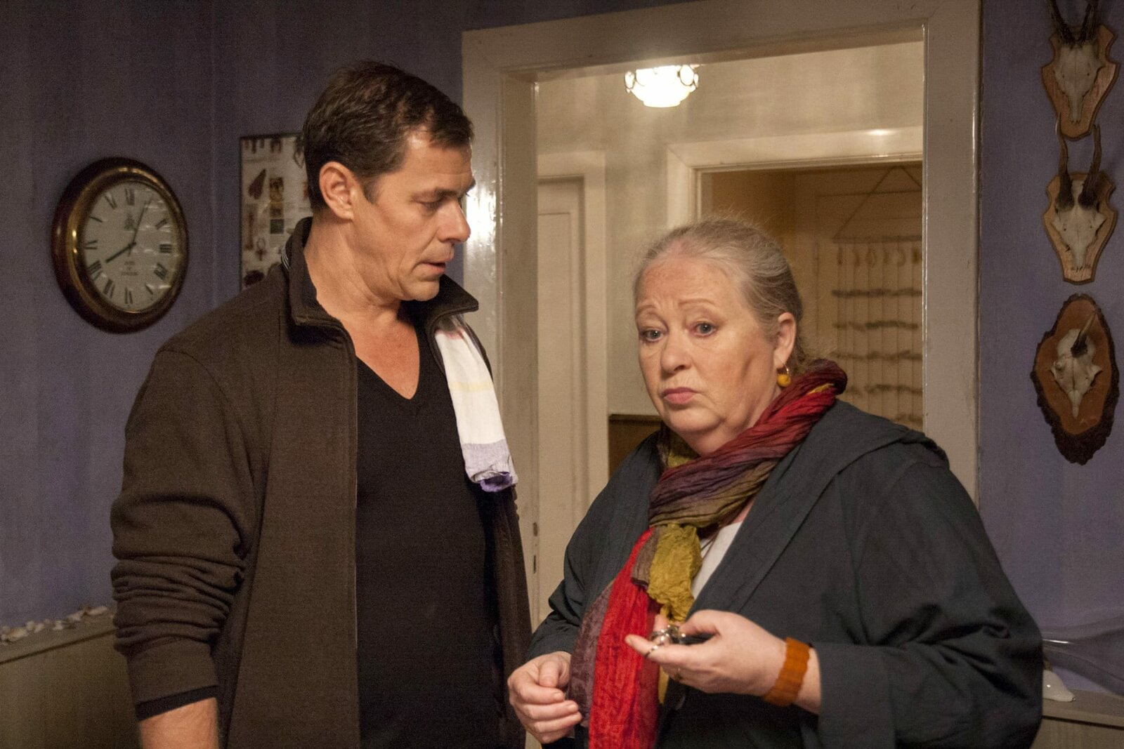 Schuss ins BlaueARD HEITER BIS TÖDLICH - MORDEN IM NORDEN, II. Staffel der Krimiserie am Vorabend mit 16 neuen Folgen, Folge 21 "Schuss ins Blaue" am Dienstag (23.04.13) um 18.50 Uhr im Ersten. Finn (Sven Martinek, l.) bekommt Besuch von seiner Tante Ria (Ulrike Bliefert, r.).Bild: © ARD/Georges Pauly