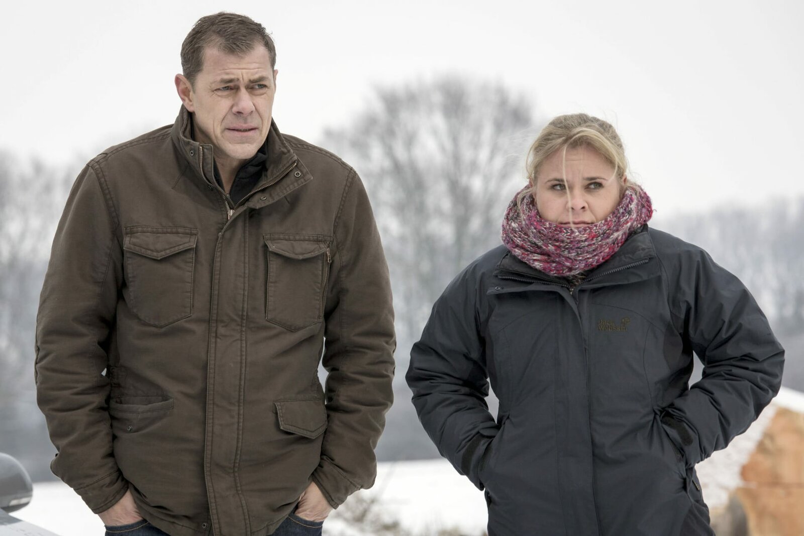 Zweite ChanceFinn Kiesewetter (Sven Martinek, l.) wird bei der Frau des Toten, Jana Hilgersen (Friederike Linke, r.) vorstellig - er muss ihr einige Fragen stellen.Bild: © ARD/Georges Pauly