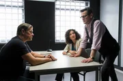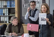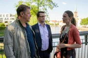 Tödliche MitschuldFinn (Sven Martinek, l.), Dr. Zobel (Proschat Madani, M.) und Lars (Ingo Naujoks, r.) überlegen, wie es im Fall Roswitha Wittling weiter gehen soll.Bild: © ARD/Georges Pauly
