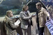 Ein Fisch namens OttoDer Täter hat im aktuellen Fall nicht nur den Tierpfleger niedergeschossen, er hat außerdemn den wertvollen Kugelfisch Otto gekidnappt und einen Erpresserbrief hinterlassen. Finn Kiesewetter (Sven Martinek, r.) und Sandra Schwartenbeck (Marie-Luise Schramm, l.) sprechen mit Aquariumsdirektor Sven Otter (Frank Jacobsen, M.).Bild: © NDR/ARD/Georges Pauly