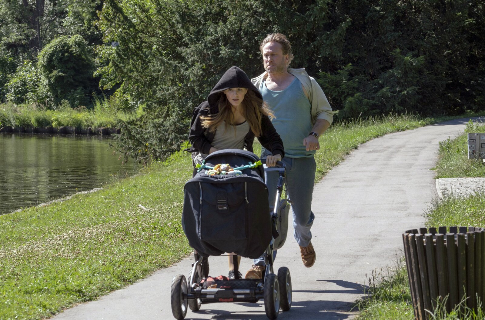 Heile FamilieBei einem Überfall in einem Lübecker Park wird Markus Henn (Sascha Rotermund, r.), der mit seinem Pflegekind unterwegs war, von einer jungen Frau [Mia Watzke (Ruby O. Fee, l.)] überfallen und schwer verletzt. Er fällt ins Koma.Bild: © ARD/Georges Pauly